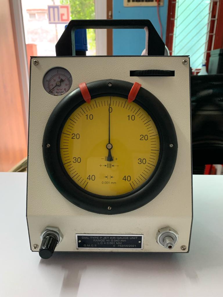 Dial type air gauge is used to measure precision ID and OD of component.